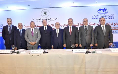 وشارك في حفل الافتتاح، المستشار العام ونائب الرئيس التنفيذي الفدرالي الأميركي مايكل هيلد، ومساعد وزير الخزانة الأميركية لشؤون مكافحة تمويل الإرهاب مارشال بيلينغسلي، ونائب حاكم مصرف لبنان المركزي محمد بعاصيري، والمستشار المساعد السابق للأمن القومي في البيت الأبيض خوان زاراتي، وكذلك الامين العام لاتحاد المصارف العربية وسام فتوح.
